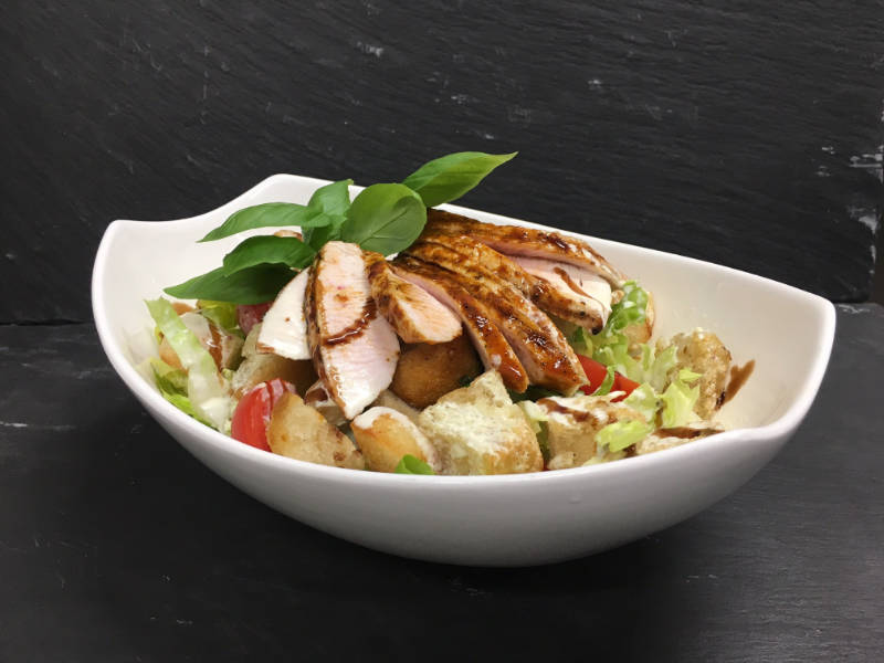 Romana / Frische Brotcroutons / Cocktailtomaten / Parmesan / Parmesan-Dressing