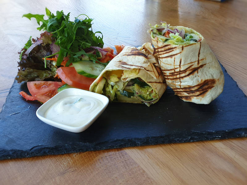 Tortilla / Salat / Rucola / Crunchy Chicken / Tomaten / Röstzwiebel